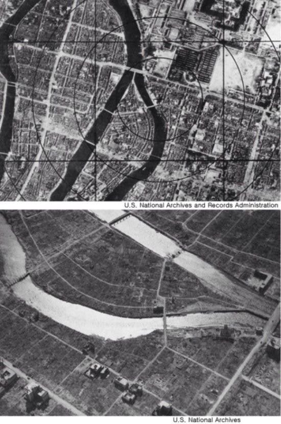 (왜 히로시마에 원폭을 투하했냐고 묻는 이들이 있는데, 히로시마는 일본본토공습 당시 단 한번도 공습을 받지 않아서 원폭의 위력을 보여줄 수 있다고 미국이 판단했어. 무엇보다 히로시마는 일본 육군의 근거지로, 당시 일본의 핵심 군사도시였어)