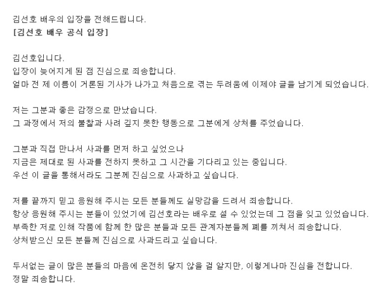 상처받으신 모든 분들께 진심으로 사과드리고 싶습니다.